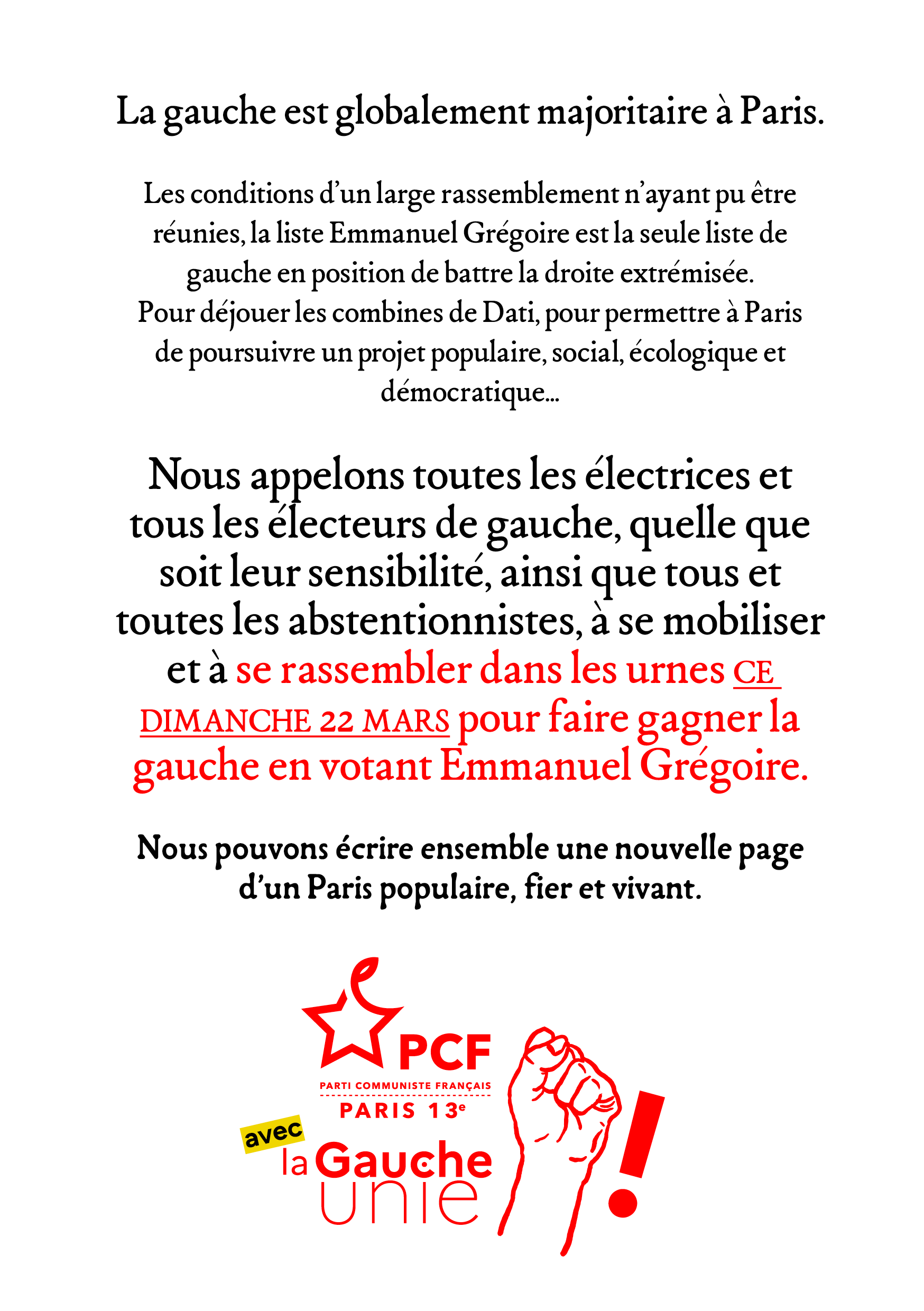Les communistes du 13e engagé.e.s pour la Gauche Unie dans les élections municipales